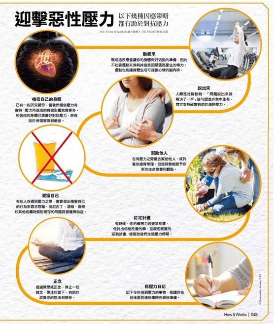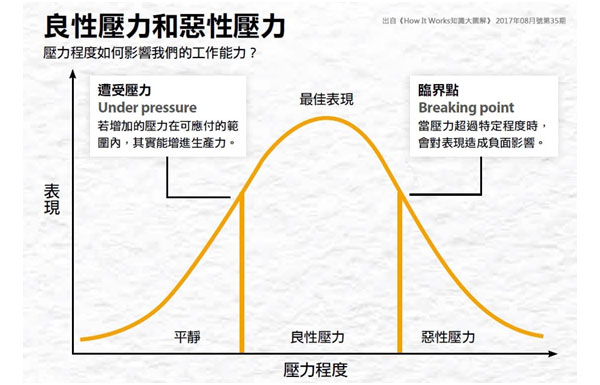 驚人的是,改變對壓力的看法似乎能改變其對人體造成的影響。若將手心冒汗、心跳加快和呼吸急促視為身體正努力幫助你的跡象,就可改善上述反應;心跳雖會加快,但血管卻能保持放鬆,這對心血管系統有益多了。