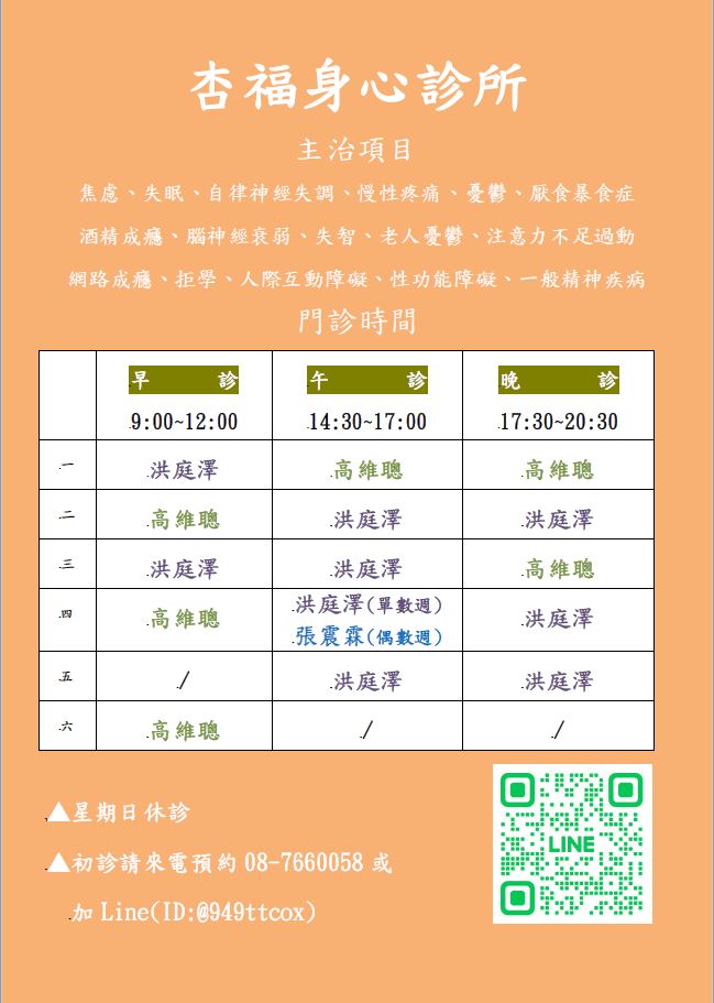 門診調整公告 11月1日起 週一上午顏醫師門診 改由洪醫師看診