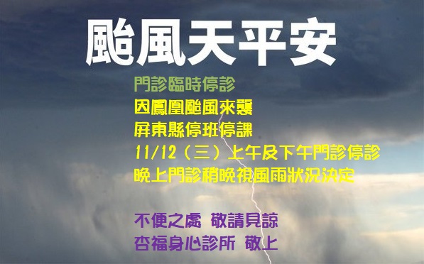 因鳳凰颱風來襲 屏東縣停班停課 11/12(三)上午及下午門診停診