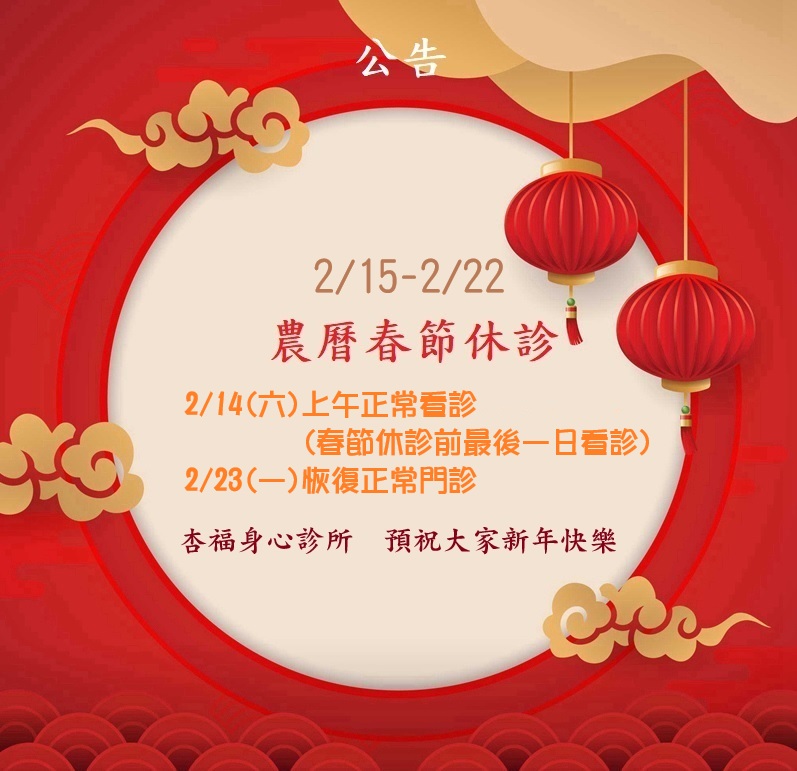 2/15-2/22農曆春節休診